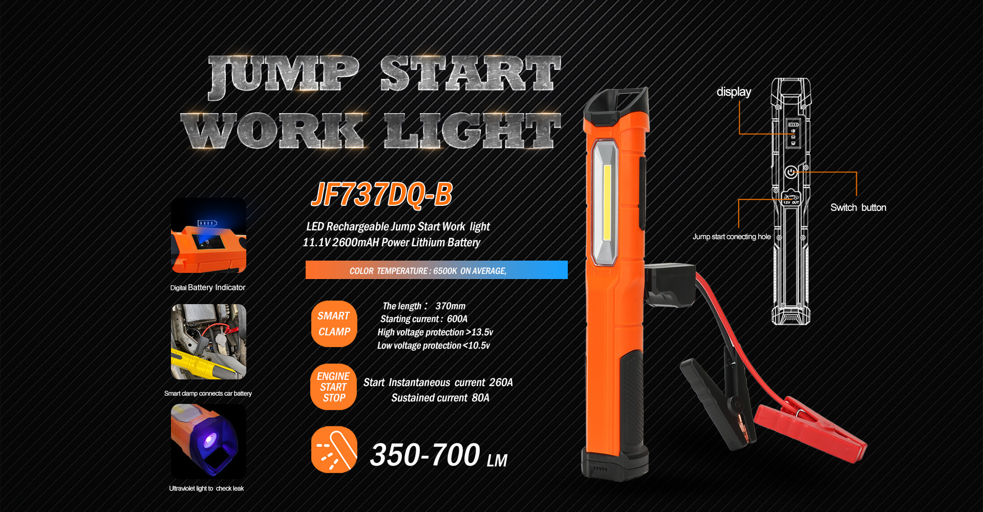 LED WORK LIGHT WITH JUMP START